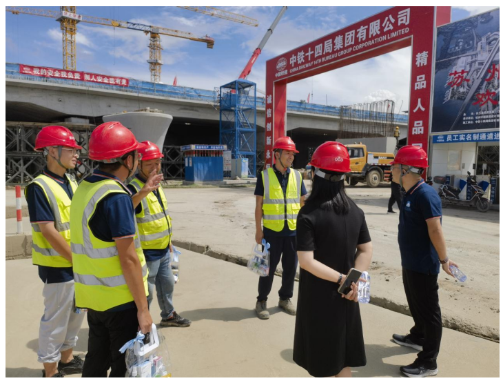 3、第三站公司領(lǐng)導(dǎo)來(lái)到吳江運(yùn)東WJ-J-2020-012地塊項(xiàng)目三期現(xiàn)場(chǎng),慰問(wèn)正在現(xiàn)場(chǎng)進(jìn)行防雷檢測(cè)和環(huán)境檢測(cè)的同事們。建筑防雷檢測(cè)關(guān)乎百姓安全,環(huán)境檢測(cè)關(guān)乎百姓健康,建筑材料部的同事們牢記自己的使命,工作認(rèn)真負(fù)責(zé)嚴(yán)格按照規(guī)范進(jìn)行現(xiàn)場(chǎng)檢測(cè),由于現(xiàn)場(chǎng)沒(méi)有電梯又是三伏天,工作中早已汗流浹背,但他們從無(wú)怨言。